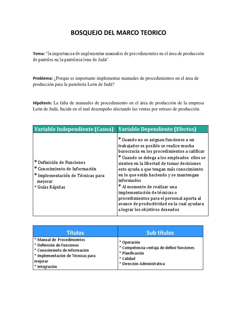 Bosquejo Del Marco Teorico: Variable Independiente (Causa) Variable Dependiente (Efectos) | Planificación | Business